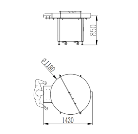 - Equipment dimensions: length 1430 x width 1180 x height 850mm